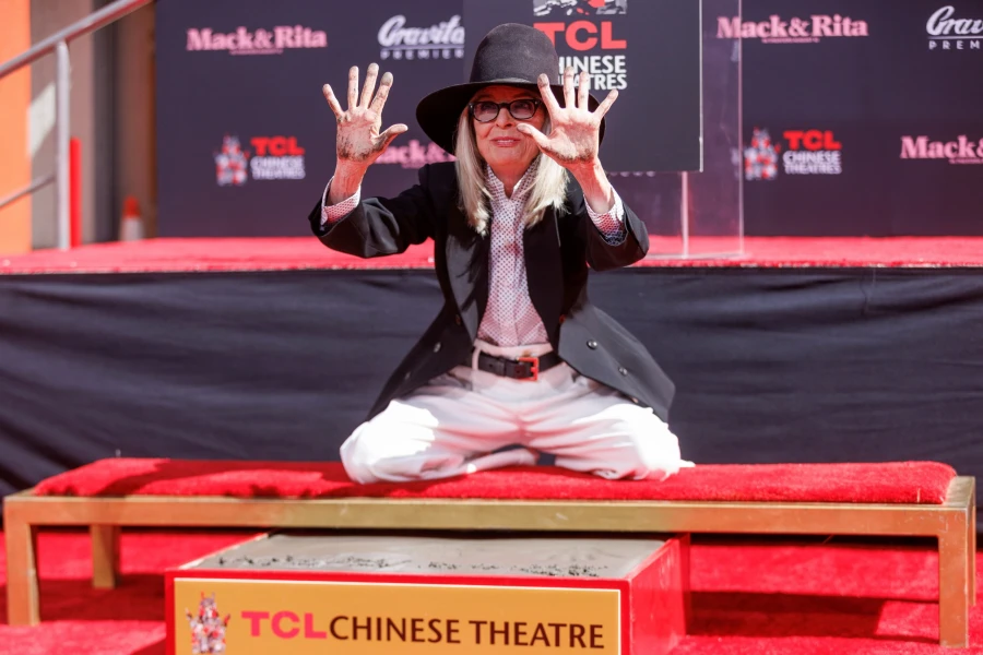 Η ηθοποιός Diane Keaton, γνωστή για τους ρόλους της στις ταινίες “The First Wives Club” και “Annie Hall”, δείχνει τα χέρια της κατά τη διάρκεια μιας τελετής απονομής χεριών και αποτυπωμάτων στο TCL Chinese Theatre στο Λος Άντζελες. (2022)