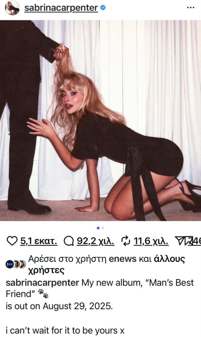 Το αμφιλεγόμενο εξώφυλλο του νέου άλμπουμ της Σαμπρίνα Κάρπεντερ, Man’s Best Friend, συνεχίζει να προκαλεί συζητήσεις, με την 26χρονη pop star να δίνει για πρώτη φορά ξεκάθαρη απάντηση για το τι σημαίνει.