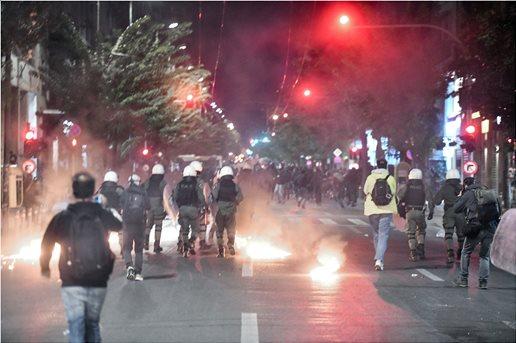 Ομάδα ατόμων επιτέθηκε στις αστυνομικές δυνάμεις και ακολούθησαν συγκρούσεις και πετροπόλεμος στη μέση του δρόμου.