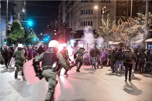 Επεισόδια με πέτρες και μολότοφ ξέσπασαν στο κέντρο της Αθήνας, μετά την πορεία διαδηλωτών προς το αστυνομικό τμήμα Ομόνοιας το απόγευμα της Παρασκευής, με αφορμή την καταγγελία 19χρονης για βιασμό από δύο αστυνομικούς στο αστυνομικού τμήματος της περιοχής.