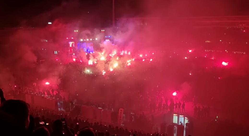 Φυσικά, δεν έλειψαν τα συνθήματα και οι χιλιάδες πυρσοί. Η πόλη σείστηκε στο σύνθημα «ΛΕΞ όρμα τους», η νύχτα έγινε μέρα ενώ τα social media «πλημμύρισαν» με εικόνες και βίντεο από τη συναυλία.