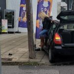 Μπήκε εν συνεχεία στο αμάξι και χτύπαγε με τα τακούνια τον ουρανό του, ενώ πετούσε και πράγματα μέσα από αυτό.