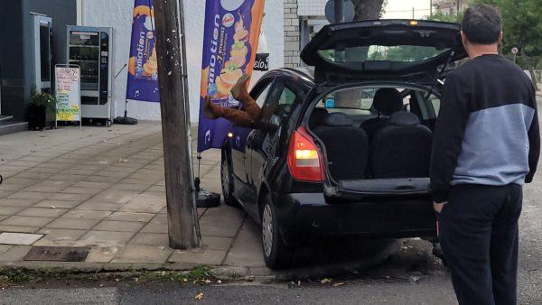 Στην προσπάθειά της να φύγει τράκαρε σε ένα δέντρο αλλά συνέχισε το σόου της.
