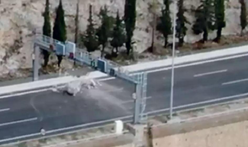 Συνεργεία της Ολυμπίας Οδού τοποθέτησαν πρόχειρα τσιμεντένια διαζώματα ώστε να διεξαχθεί, έστω και στη μία λωρίδα, η κυκλοφορία των οχημάτων.