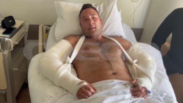 Μετά τον σοβαρό τραυματισμό του, ο 22χρονος βρίσκεται καθηλωμένος στο κρεβάτι του νοσοκομείου με νάρθηκα και στα δύο χέρια, μη μπορώντας να κάνει οποιαδήποτε κίνηση, πέρα από το να κουνά τα δάχτυλά του, ανέφερε στην εκπομπή Live News.