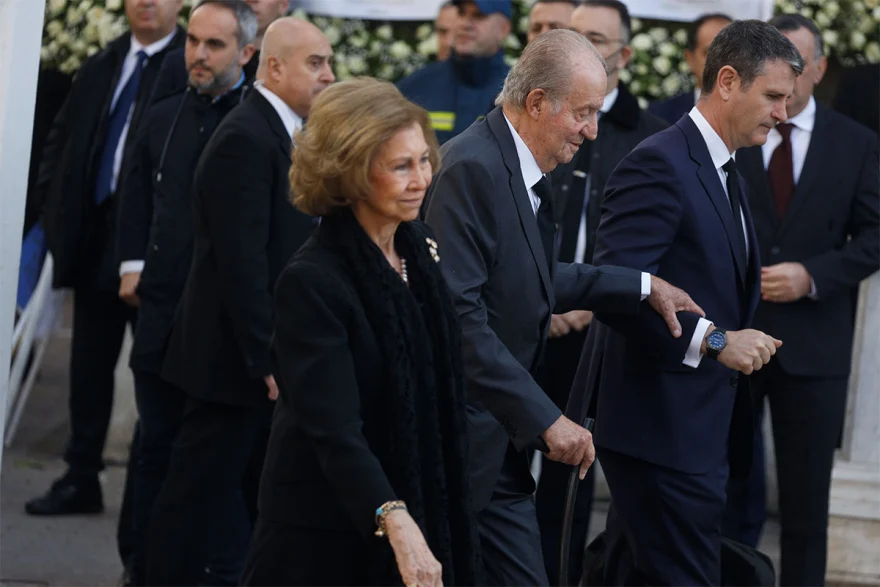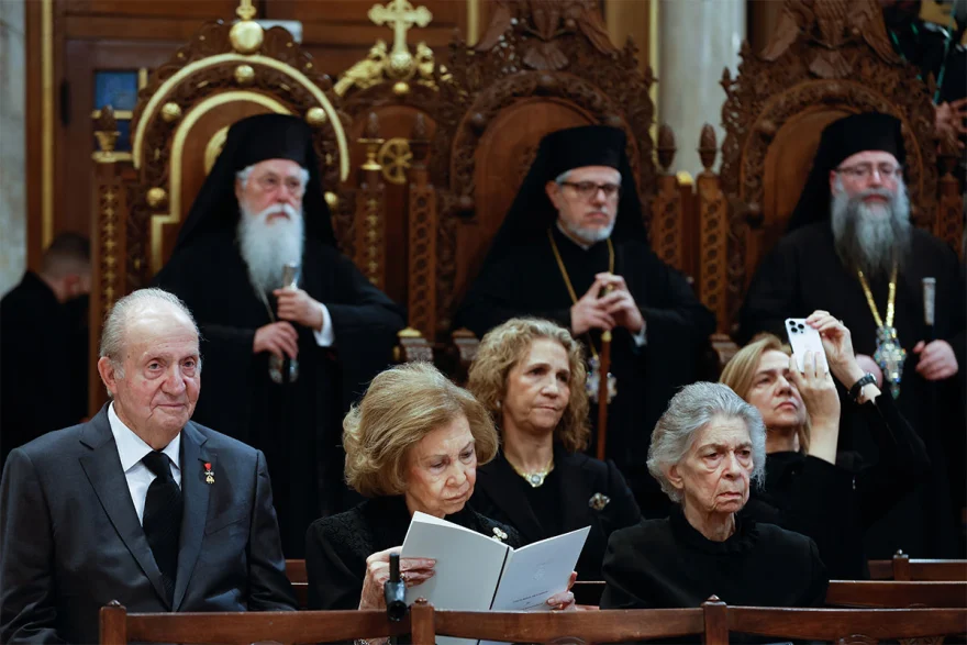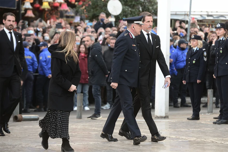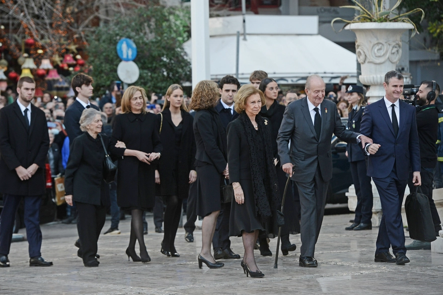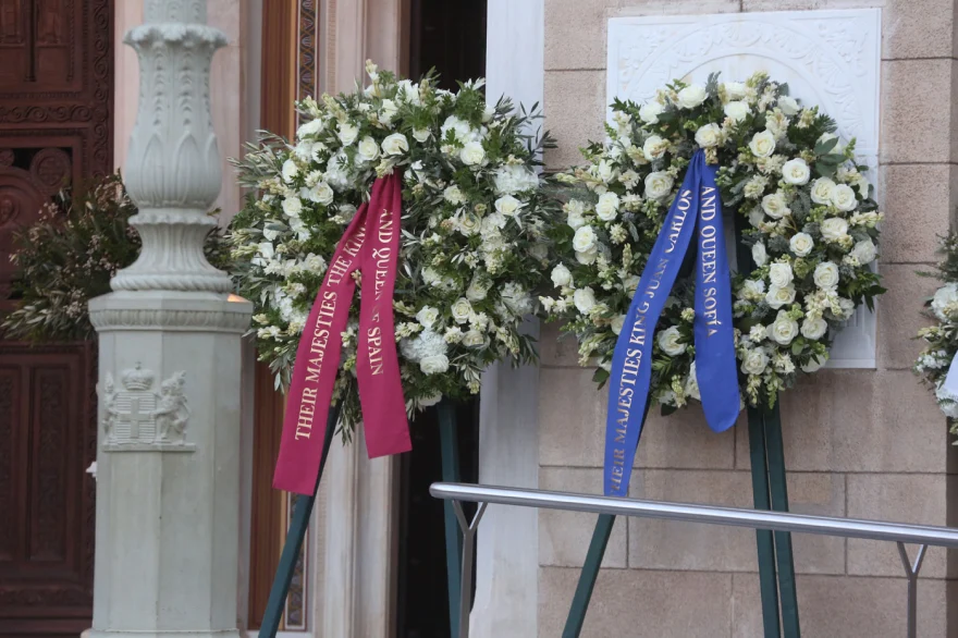 Στην Ιερά Μητρόπολη ειχαν φθάσει νωρίτερα και οι γιοί του τέως Βασιλιά. Ενώ πλήθος στεφανιών είναι κατακλίσει τον χώρο του ναού.