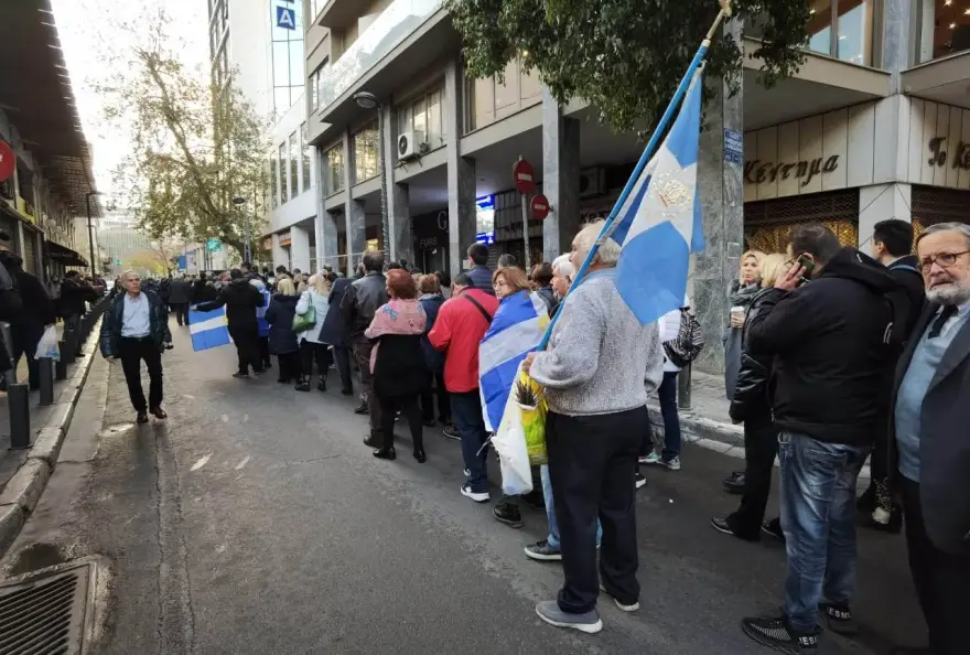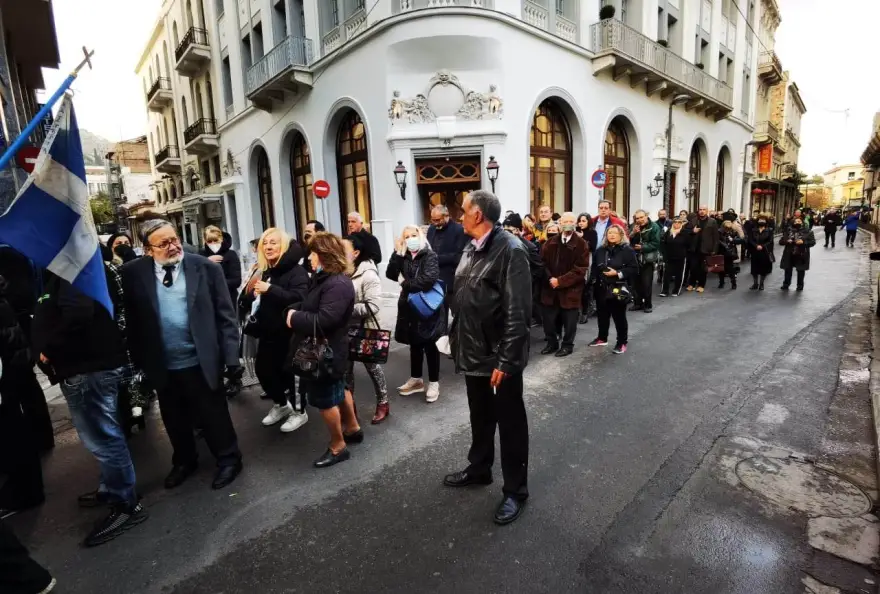 Ο συγκεντρωμένος κόσμος είχε καλύψει το μεγαλύτερο κομμάτι του χώρου μπροστά από την Μητρόπολη με αρκετούς από όσους θέλουν να αποχαιρετήσουν τον τέως βασιλιά Κωνσταντίνο να έχουν έρθει από αρκετές περιοχές της Ελλάδας.