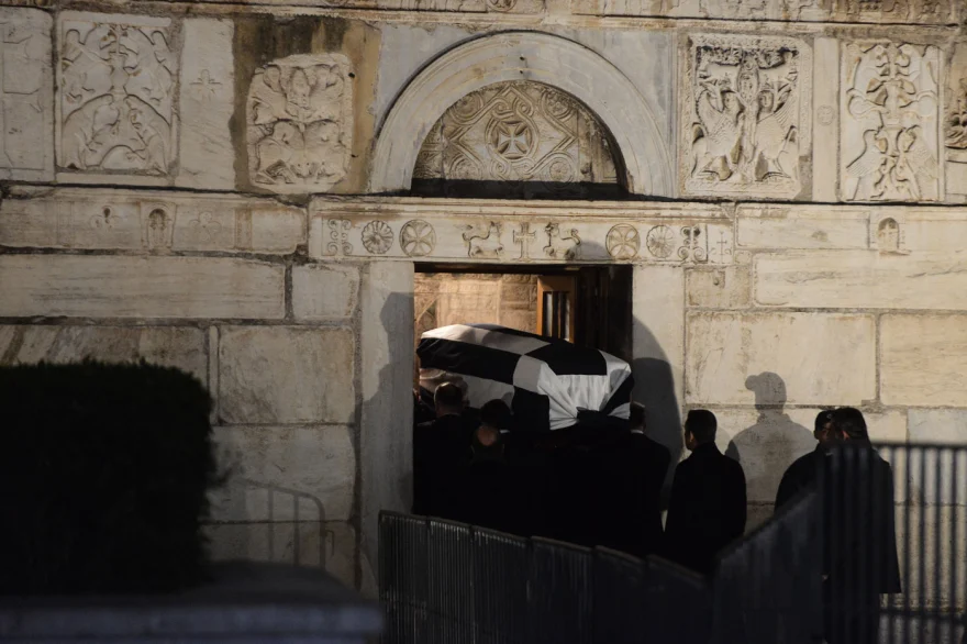 Το κλίμα έχει όλο και πιο συγκηνησιακό την ώρα της εξόδιου λειτουργίας, αλλά και στον επικήδειο του Παύλου, πρωτότοκου γιου.