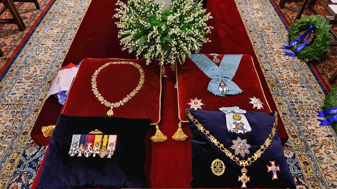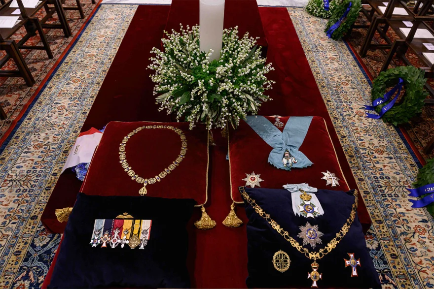 Το φέρερτο του τέως Βασιλιά Κωνσταντίνου ήταν γεμάτο με τα παράσυμα του αλλά και το Ολυμπιακό του μετάλλιο.