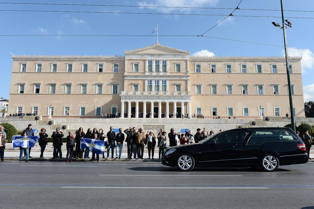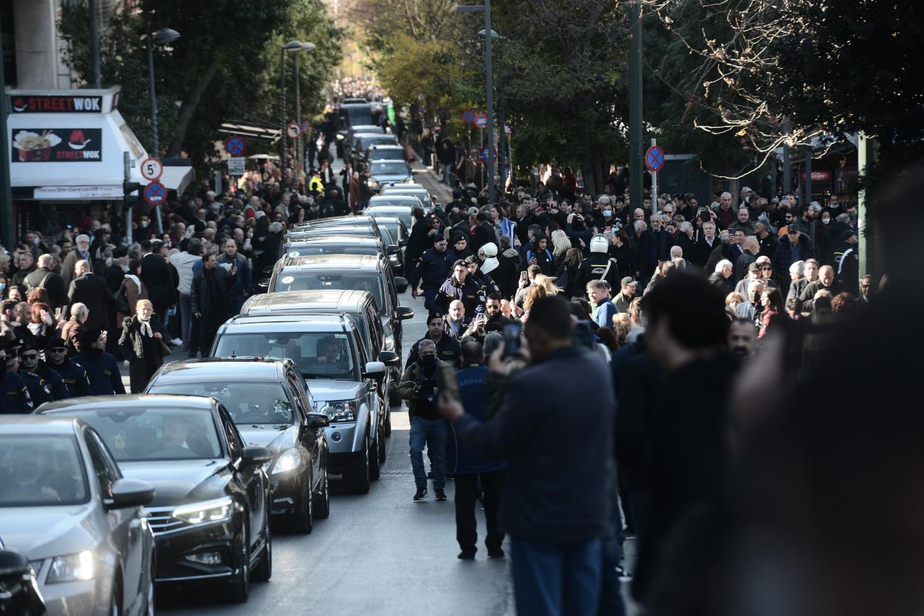 Με την ολοκλήρωση της εξοδίου και την ανάγνωση των επικήδειων, ξεκίνησε η πομπή προς το Τατόι.