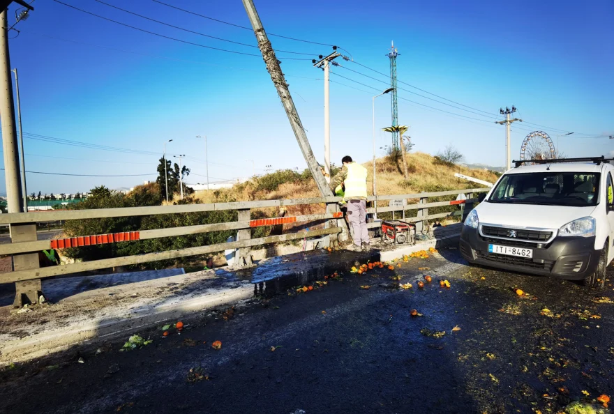 «Υπάρχουν επίσης ζημιές στα στηθαία και σε στύλους ηλεκτροφωτισμού και συνολικά θα χρειαστούν τουλάχιστον 2,5 με 3 ώρες για την πλήρη αποκατάσταση», εκτίμησε στην τηλεόραση της ΕΡΤ ο Κίμων Λογοθέτης, Σύμβουλος Οδικής Ασφάλειας. «Οι δύο δεξιές λωρίδες έχουν ακόμη πορτοκάλια και άλλα οπωροκηπευτικά», ανέφερε.