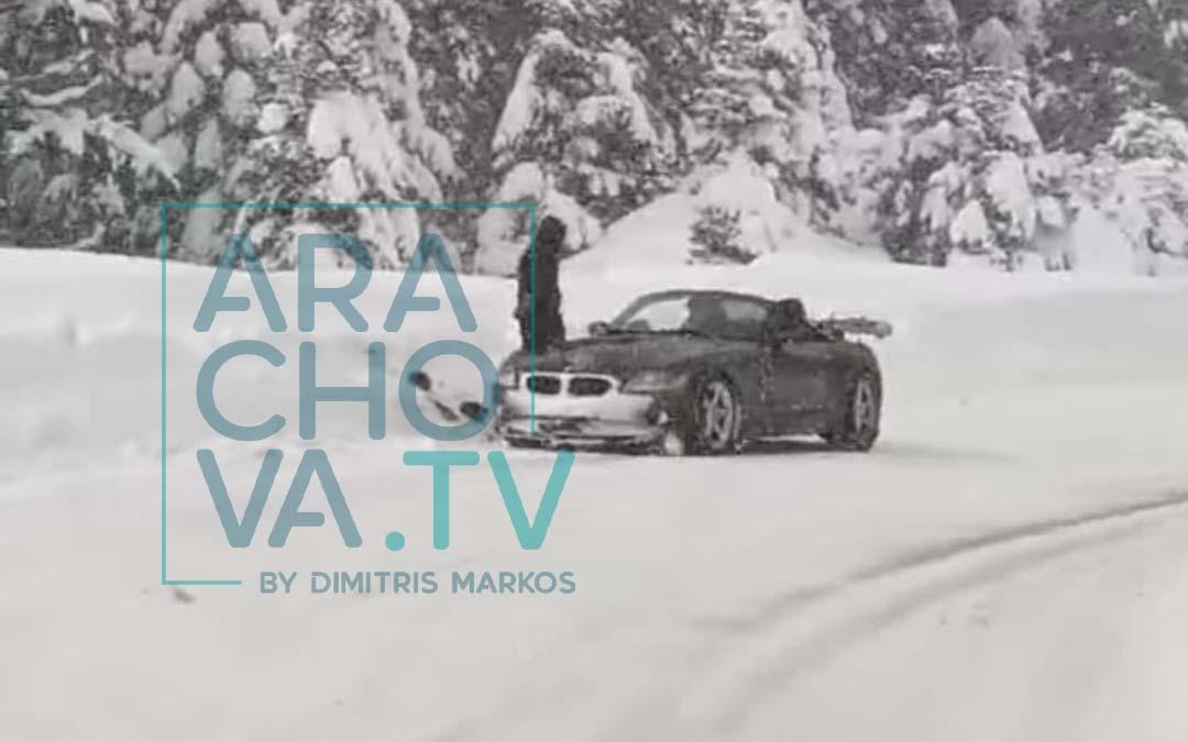 Δείτε το κάμπριο αυτοκίνητο που έχει “μείνει” -προφανώς γιατί δεν έχει αλυσίδες- ενώ εντύπωση προκαλεί το γεγονός ότι… η κουκούλα είναι ανοιχτή εν μέσω χιονοθύελλας!