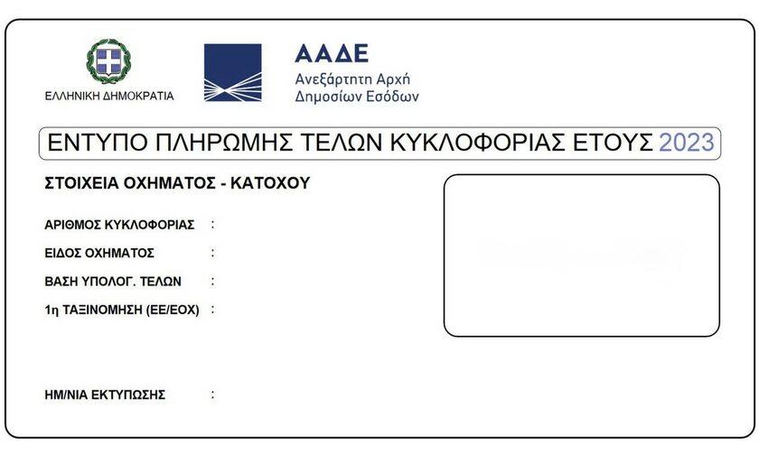 Το ειδοποιητήριο για τα τέλη κυκλοφορίας περιλαμβάνει QR Code.