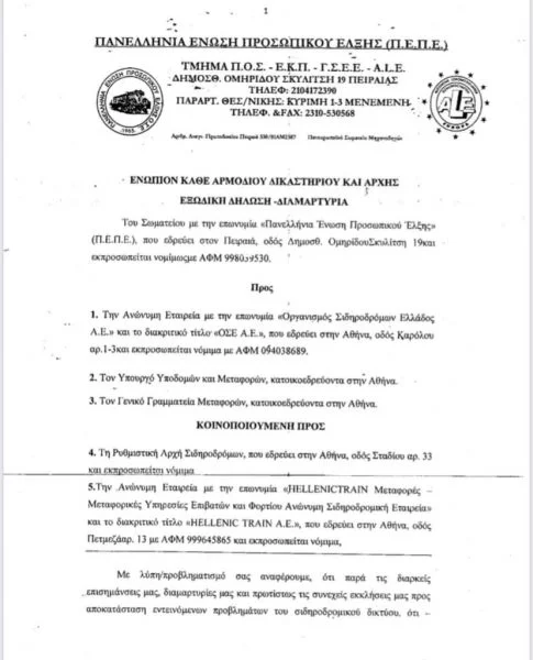 Μετά τα έγγραφα βόμβα, της παραίτησης του υπεύθυνου Ασφαλείας της ΕΡΓΟΣΕ στις 27 Απριλίου του 2022, και την καταγγελία συνδικαλιστών για τις σοβαρές ελλείψεις ασφαλείας στις 7 Φεβρουαρίου 2023, έρχονται στο φως τα εξώδικα της Πανελλήνιας Ένωσης Προσωπικού Ελξης, που από τον Μάρτιο του 2022, έκρουε τον κώδωνα του κινδύνου.