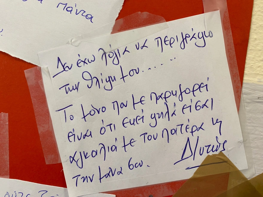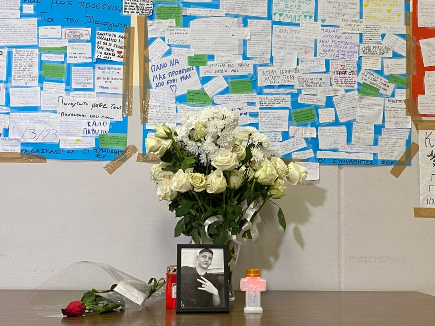 Η σύγκρουση των τρένων στα Τέμπη, δημιούργησε ιστορίες πραγματικού δράματος. Ο 15χρονος Παναγιώτης βρισκόταν στο μοιραίο τρένο με τον πατέρα του. Οι συμμαθητές του θέλησαν να το αποχαιρετήσουν με μηνύματα, σε έναν πίνακα στο σχολείο τους.