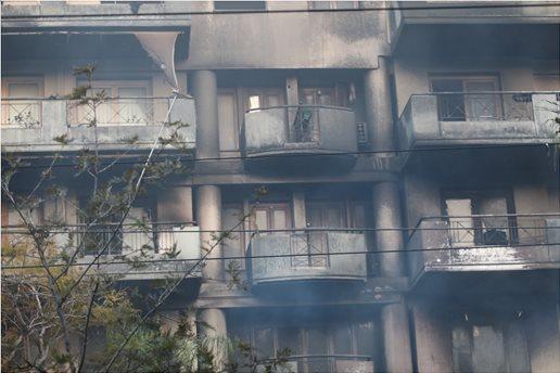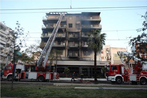 Η φωτιά επεκτάθηκε από το ισόγειο κατάστημα και στους ορόφους της πολυκατοικίας, με αποτέλεσμα να κινδυνεύσουν ανθρώπινες ζωές.