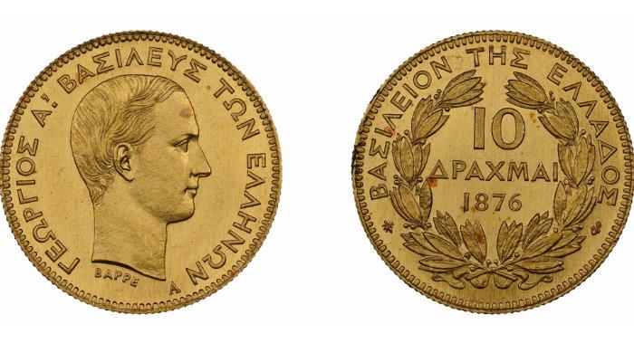 Ακόμα ένα πολύ σπάνιο νόμισμα, αυτού του Γεωργίου του πρώτου , οι 10 δραχμές του 1876, πουλήθηκε σε τιμή ρεκόρ , στις 25.000 ευρώ.