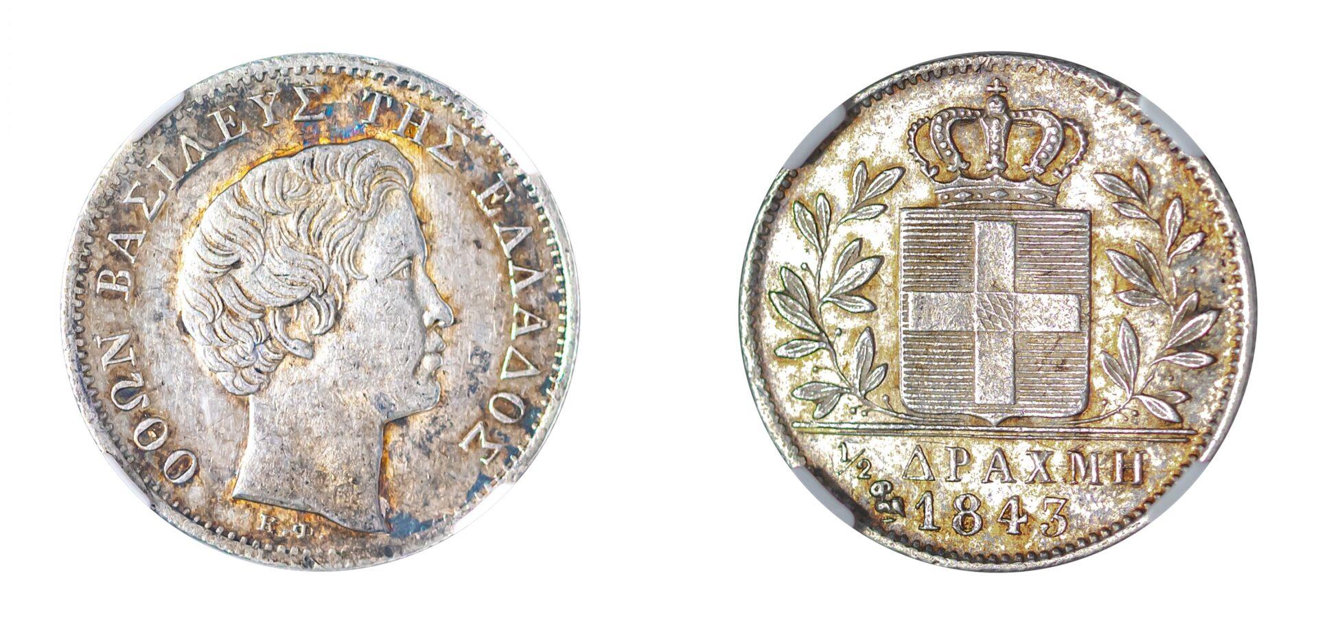 Σε Έλληνα συλλέκτη μέσω Διαδικτύου πουλήθηκε το νόμισμα της μισής δραχμής του Όθωνα του 1843 σε δημοπρασία που έλαβε χώρα στην Αθήνα το περασμένο Σαββατοκύριακο. Αξίζει να σημειωθεί πως η πώληση του στις 35.000 ευρώ αποτελεί τιμή ρεκόρ για το συγκεκριμένο νόμισμα.