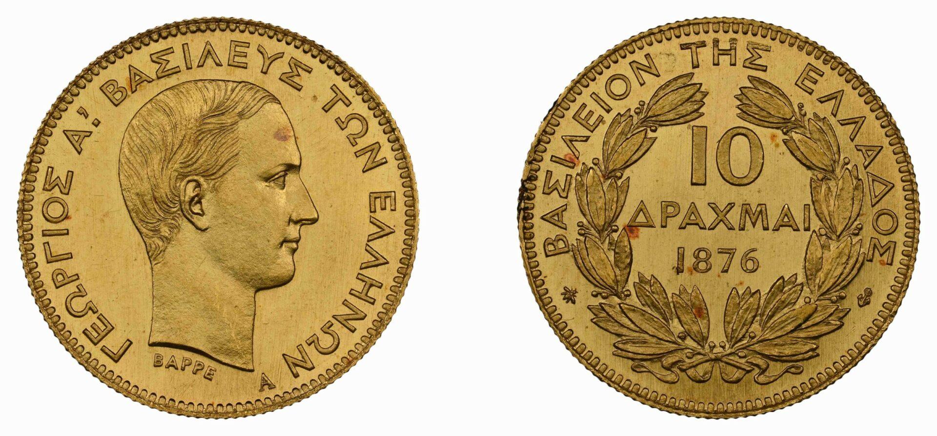 Ακόμα ένα πολύ σπάνιο νόμισμα, αυτού του Γεωργίου του πρώτου , οι 10 δραχμές του 1876, πουλήθηκε σε τιμή ρεκόρ , στις 25.000 ευρώ.