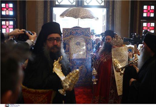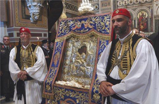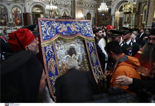 Η εικόνα της Παναγίας «Άξιον εστί» έφτασε χθες στην Αθήνα με ειδική πτήση και είναι η πρώτη φορά που μεταφέρεται εκτός Αγίου Όρους. Αυτός είναι και ο λόγος που μέχρι σήμερα δεν την έχουν προσκυνήσει ποτέ γυναίκες.