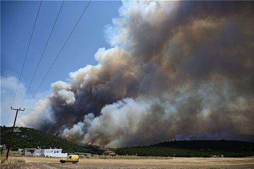 Άσχημη τροπή λαμβάνει η φωτιά που καίει τα Δερβενοχώρια, καθώς το πύρινο μέτωπο πλέον πλησιάζει την Οινόη.