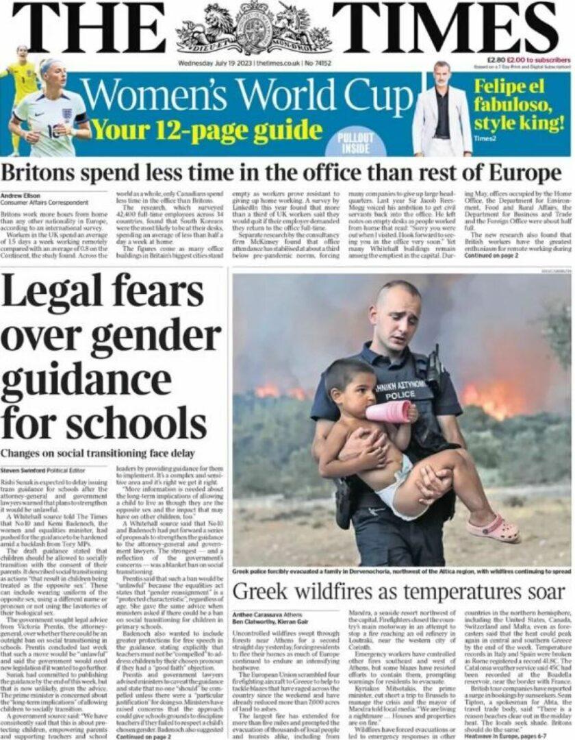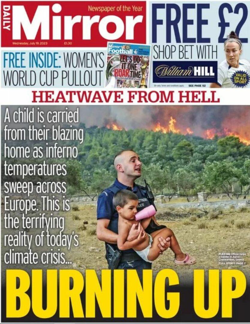 Οι εφημερίδες Mirror, Independent και The Times επέλεξαν τις συγκεκριμένες φωτογραφίες για την πρώτη τους σελίδα, όπου μάλιστα γίνεται εκτενής αναφορά στις συνέπειες της κλιματικής κρίσης αλλά και στα προβλήματα που έχει δημιουργήσει ο καύσωνας και οι φωτιές στους τουρίστες, στις περιοχές της νότιας Ευρώπης.
