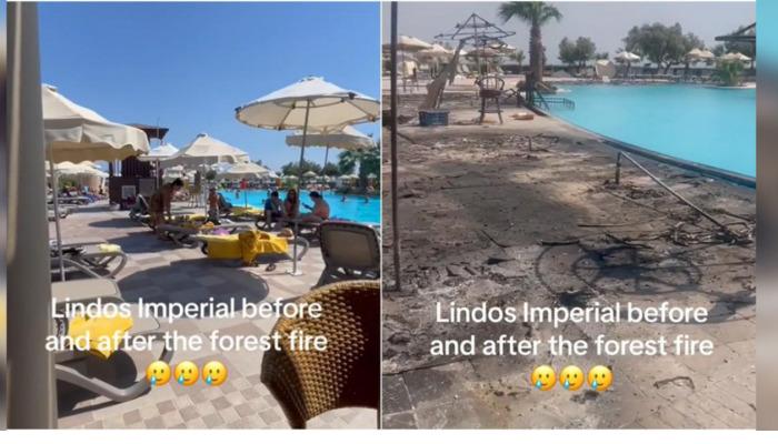 Ένας από τους τουρίστες που βρισκόταν σε ξενοδοχείο της Λίνδου ανέβασε το «πριν» και το «μετά» της τεράστιας φωτιάς που έκαψε και το ξενοδοχείο που έμενε.