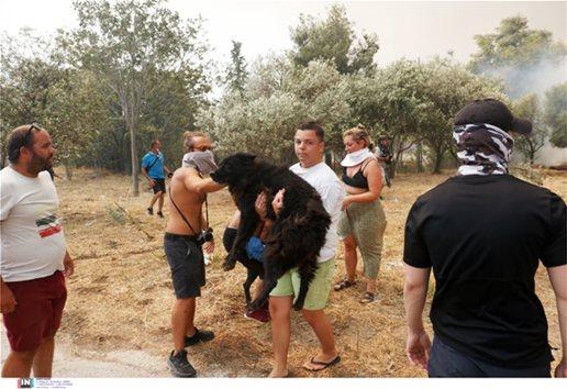 Συγκινητικές είναι οι προσπάθειες των ανθρώπων να σώσουν ζώα που είναι εγκλωβισμένα στο μέτωπο της πυρκαγιάς στην Πάρνηθα.