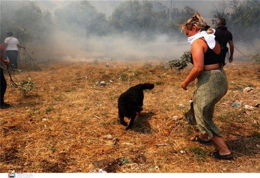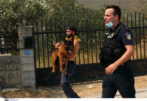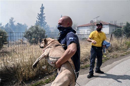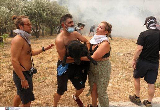 Συγκινητικές είναι οι προσπάθειες των ανθρώπων να σώσουν ζώα που είναι εγκλωβισμένα στο μέτωπο της πυρκαγιάς στην Πάρνηθα.