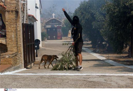 Συγκλονιστικά είναι τα στιγμιότυπα από τους ανθρώπους που αναγκάζονται να αφήσουν τα σπίτια τους και προσπαθούν να σώσουν ό,τι σώζεται και κυρίως τα κατοικίδιά τους.
