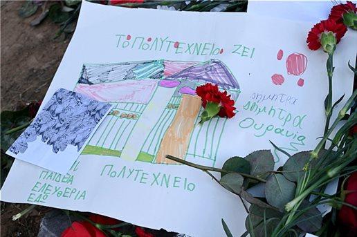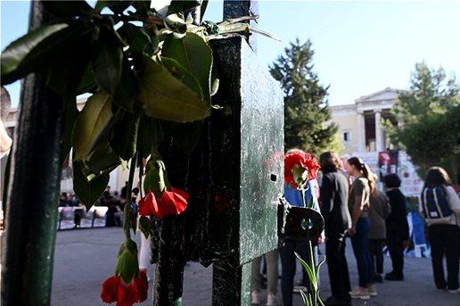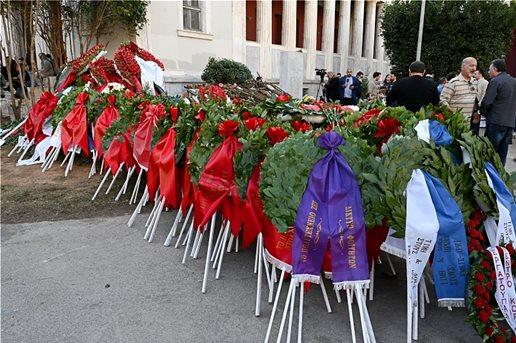 Πολίτες των ηλικιών προσήλθαν στον ιστορικό χώρο του εκπαιδευτικού ιδρύματος και τιμούν τους νεκρούς και όλα τα θύματα της Χούντας.