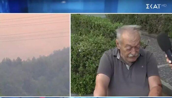 «Λυπάμαι που είμαι Έλληνας. Απαράδεκτη κατάσταση. Τέτοιο πράγμα δεν έχω ξαναδεί. Όπως με βλέπεις έχω αφήσει τη συσκευή οξυγόνου, το CPAP της άπνοιας, τα φάρμακά μου. Δεν είναι τόσο έντονα, βάζω το βράδυ. Δεν ξέρω τι έχει γίνει. Η τσάντα μου με κάρτες, ταυτότητες και δίπλωμα… Το μόνο που πήρα είναι το τηλέφωνο».