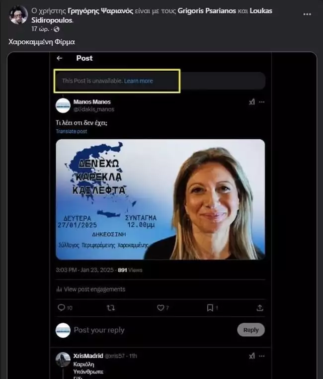 «Οι χαροκαμένες το γλεντάνε;» αναρωτιέται σε άλλο post ο Γρηγόρης Ψαριανός.