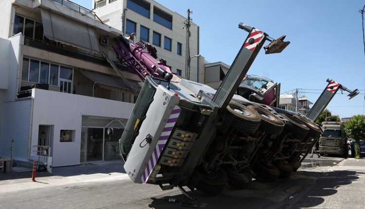 Η πρωινή ηρεμία του ήσυχου Σαββάτου (26/7) στο Περιστέρι διαλύθηκε βίαια, όταν ένας εκκωφαντικός κρότος προοιώνιζε ένα πρωτοφανές και τρομακτικό γεγονός. Ένα ογκώδες γερανοφόρο όχημα, κάτω από συνθήκες που παραμένουν αδιευκρίνιστες, ανετράπη παρά το γεγονός πως τα στηρίγματά του κατά την εκτέλεση των εργασιών ήταν σε έκταση. Από την ανατροπή παρασύρθηκαν καλώδια ηλεκτροδότησης και ο βραχίονας κατέληξε να «αγκαλιάσει» ένα διώροφο σπίτι. Το σουρεαλιστικό θέαμα του γιγάντιου μηχανήματος σκαρφαλωμένου στην ταράτσα του κτιρίου άφησε ολόκληρη τη γειτονιά βυθισμένη στην απόλυτη κατάπληξη και τον τρόμο.