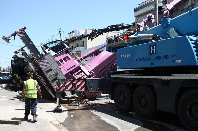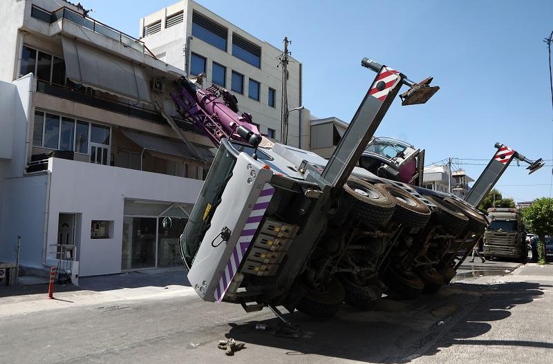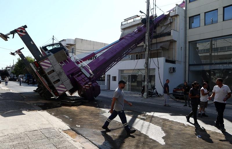 Η πρωινή ηρεμία του ήσυχου Σαββάτου (26/7) στο Περιστέρι διαλύθηκε βίαια, όταν ένας εκκωφαντικός κρότος προοιώνιζε ένα πρωτοφανές και τρομακτικό γεγονός. Ένα ογκώδες γερανοφόρο όχημα, κάτω από συνθήκες που παραμένουν αδιευκρίνιστες, ανετράπη παρά το γεγονός πως τα στηρίγματά του κατά την εκτέλεση των εργασιών ήταν σε έκταση. Από την ανατροπή παρασύρθηκαν καλώδια ηλεκτροδότησης και ο βραχίονας κατέληξε να «αγκαλιάσει» ένα διώροφο σπίτι. Το σουρεαλιστικό θέαμα του γιγάντιου μηχανήματος σκαρφαλωμένου στην ταράτσα του κτιρίου άφησε ολόκληρη τη γειτονιά βυθισμένη στην απόλυτη κατάπληξη και τον τρόμο.