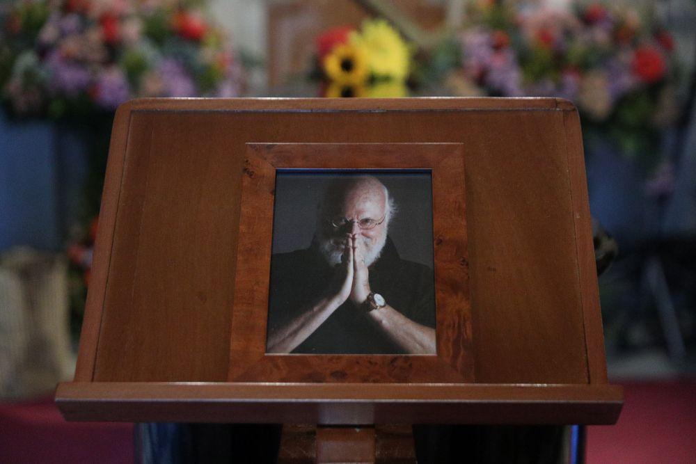 Το τελετουργικό συντονίζει η Περιφέρεια σε συνεργασία με την οικογένεια. Από τις 12:40 θα αρχίσει η προσέλευση πολιτικών και επισήμων, ενώ στις 13:00 θα ξεκινήσει η νεκρώσιμος ακολουθία με έξι επικήδειους διάρκειας πέντε λεπτών ο καθένας, από τη Δήμητρα Γαλάνη, τον Αλκίνοο Ιωαννίδη, τον συγγραφέα Γιώργο Σκαμπαρδώνη, τον εικαστικό Αλέξη Κιριτσόπουλο, την Κατερίνα Σακελλαροπούλου και τον πρωθυπουργό Κυριάκο Μητσοτάκη.