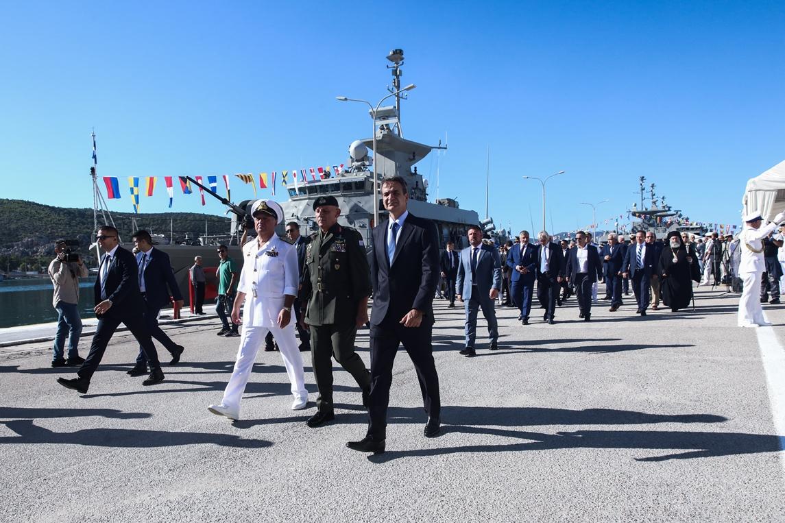 Λίγες ώρες μετα την απάντηση που έδωσαν Αθήνα και Ουάσινγκτον στην τουρκική προκλητικότητα όπως αυτή εκφράστηκε για άλλη μια φορά από τα χείλη του Ρετζέπ Ταγίπ Ερντογάν ο οποίος έθεσε εκ νέου θέμα αποστρατιωτικοποίησης των νησιών, ο Κυριάκος Μητσοτάκης τόνισε ότι «είναι πολλά τα μηνύματα που στέλνει σήμερα το νέο απόκτημα του Πολεμικού Ναυτικού. Η ταχύτητα και ο εξοπλισμός του δηλώνουν ότι τα νερά μας θα παραμείνουν απόρθητα».