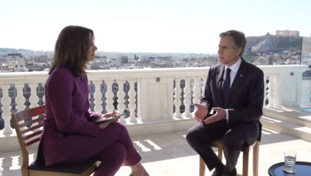 Αποκλειστική και εφ’ όλης της ύλης συνέντευξη παραχώρησε ο Αμερικανός υπουργός Εξωτερικών, Άντονι Μπλίνκεν στο Mega και τη δημοσιογράφο Νίκη Λυμπεράκη κατά τη διάρκεια της επίσκεψής του στη χώρα μας.