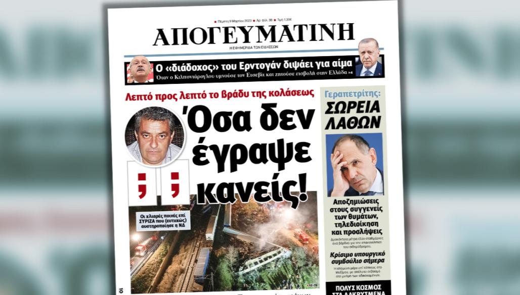 Διαβάστε σήμερα στην «Απογευματινή»: Αι γενεαί πάσαι δακρυσμένες – Δύσκολοι αποχωρισμοί – Λύγισε η ΠτΔ – Μητσοτάκης: Θα την αλλάξω την κακιά (χ)ώρα