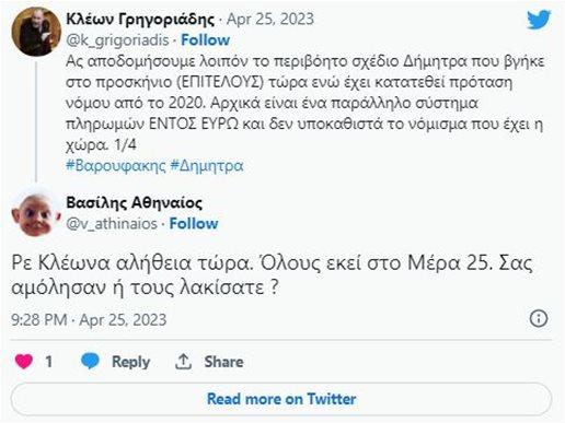 Πάρτι… στο Twitter προκάλεσε η απόπειρα του βουλευτή του ΜέΡΑ25 Κλέωνα Γρηγοριάδη να εξηγήσει τι ακριβώς είναι το σύστημα πληρωμών «Δήμητρα», το οποίο επικαλείται ο Γιάνης Βαρουφάκης.