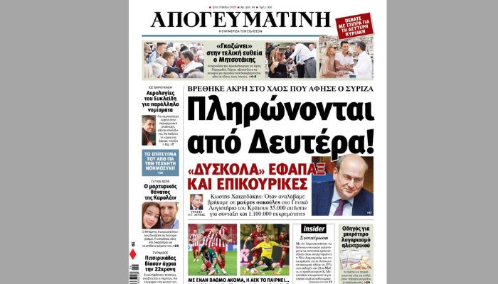 Διαβάστε στην ΑΠΟΓΕΥΜΑΤΙΝΗ την Τρίτη 9 Μαΐου