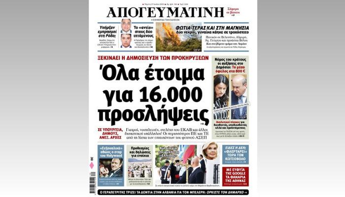 Διαβάστε σήμερα στην Απογευματινή: