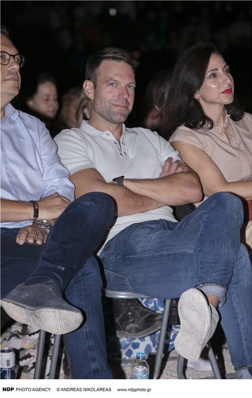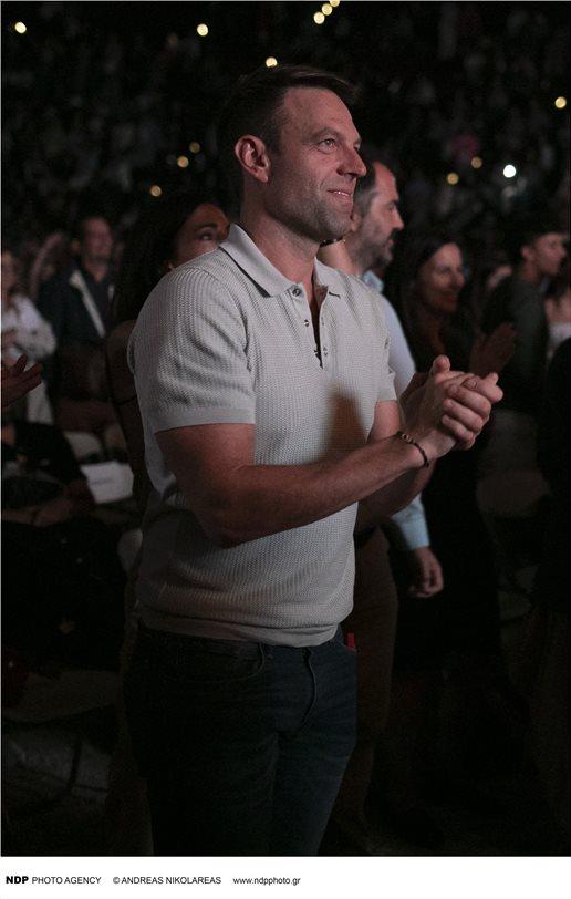 Με χαλαρή διάθεση και ντυμένος κάζουαλ, ο κ. Στέφανος Κασσελάκης απόλαυσε τη συναυλία μόνος του, χωρίς τον σύντροφό του, συνοδευόμενος μόνο από τον Προέδρου της Κοινοβουλευτικής Ομάδας του ΣΥΡΙΖΑ Σωκράτη Φάμελλο και τη βουλευτή Νίνα Κασσιμάτη.