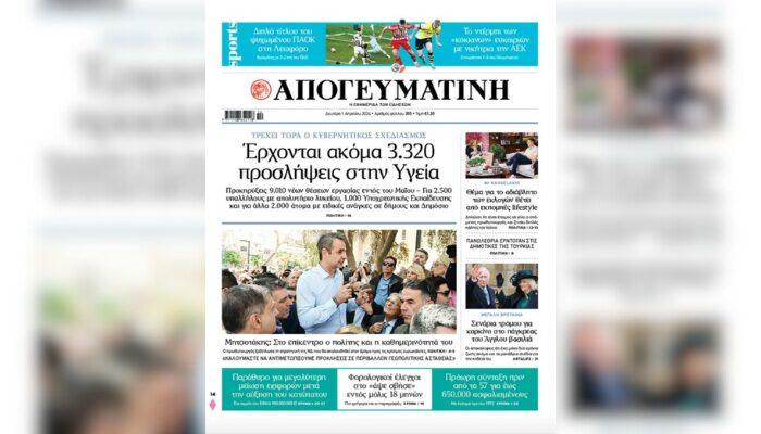 Διαβάστε σήμερα στην Απογευματινή που κυκλοφορεί στα περίπτερα όλης της χώρας.