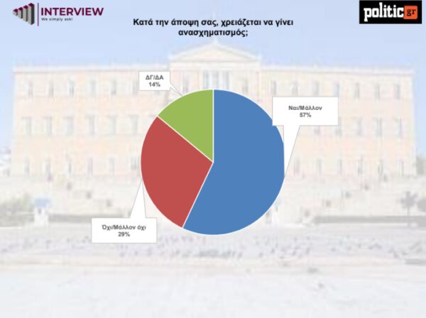 Η δυσαρέσκεια προς την υπάρχουσα κυβέρνηση είναι έντονη, με το 57% των ερωτηθέντων να υποστηρίζει ότι είναι απαραίτητος ανασχηματισμός για την ανανέωση της κυβέρνησης, ενώ το 29% θεωρεί ότι δεν χρειάζονται αλλαγές.