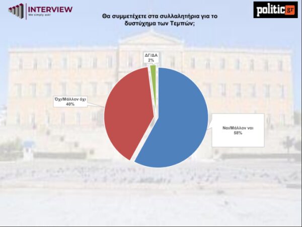 Δημοσκόπηση Interview: 6 στους 10 θα συμμετάσχουν στα συλλαλητήρια για τα Τέμπη