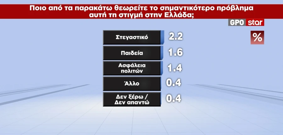 Το σημαντικότερο πρόβλημα των πολιτών είναι η ακρίβεια και τα χαμηλά εισοδήματα με 58,5% και ακολουθεί η διαφθορά με 18%.