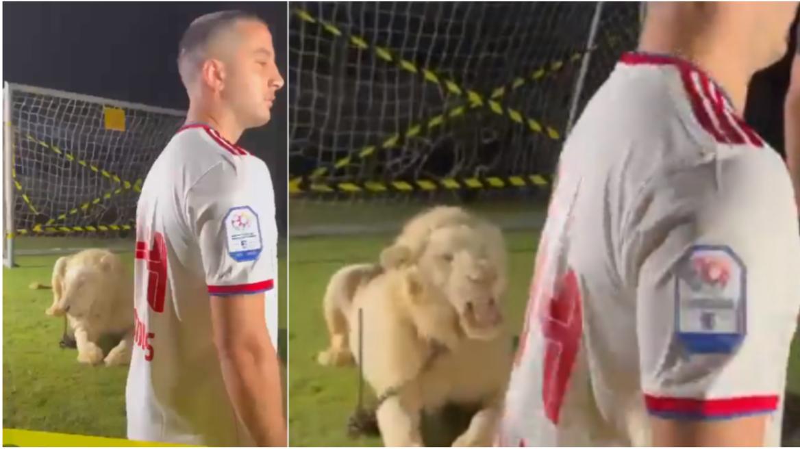 Τρομοκρατήθηκε ο Κώστας Μανωλάς κατά τη διάρκεια της παρουσίασης του από την Αλ Σαρτζά των Ηνωμένων Αραβικών Εμιράτων. Ένα λιοντάρι που βρισκόταν δίπλα του άφησε έναν βρυχηθμό.