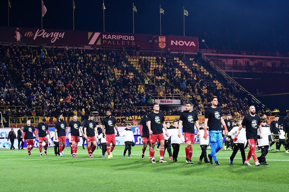 Σε μια συγκινητική κίνηση προχώρησαν οι ποδοσφαιριστές του Άρη και του Ολυμπιακού κατά την εμφάνιση τους στον αγωνιστικό χώρο.