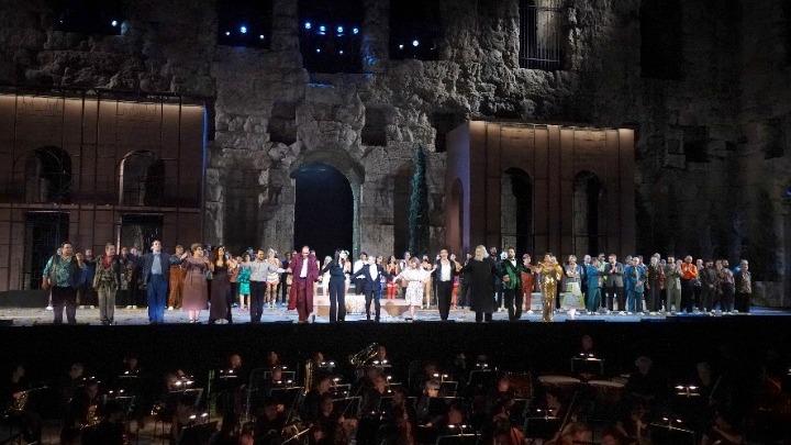 Η πολυαναμενόμενη παραγωγή του «Ριγολέττου» της Εθνικής Λυρικής Σκηνής άνοιξε χθες βράδυ (2/6) τις εκδηλώσεις του Φεστιβάλ Αθηνών και Επιδαύρου στο κατάμεστο Ηρώδειο. Η εντυπωσιακή, σκοτεινή και αιχμηρή παραγωγή -σε μουσική διεύθυνση Λουκά Καρυτινού και σκηνοθεσία της Κατερίνας Ευαγγελάτου– η οποία είχε αναβληθεί λόγω της πανδημίας του κορωνοϊού το 2020 και το 2021, ξεκίνησε το «ταξίδι» της στις 2 Ιουνίου 2022 στο Ρωμαϊκό Ωδείο στη σκιά της Ακρόπολης, ενθουσιάζοντας το κοινό.